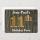 This invitation design features the ordinal number "11th" with a faux gold-like appearance. It also features a customised name, and a rustic faux wood look background. The event details on the back can be personalised. It could be used to invite people to somebody’s eleventh birthday party. [~Z0000016]