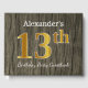 This guest book design features the ordinal number "13th" with a faux gold-like appearance. It also features a custom name, and a rustic faux wood look background. It could be used at a party for somebody celebrating their thirteenth birthday. [~Z0000053]