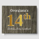 This guest book design features the ordinal number "14th" with a faux gold-like appearance. It also features a customised name, and a rustic faux wood appearance background. It could be used at a party for somebody celebrating their fourteenth birthday. [~Z0000053]