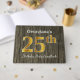 This guest book design features the ordinal number "25th" with a faux gold-like appearance. It also features a customised name, and a rustic faux wood look background. It could be used at a party for somebody celebrating their twenty fifth birthday. [~Z0000053]