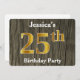 Rustic, Faux Gold 25th Birthday Party; Custom Name Invitation
