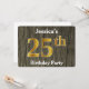 This invitation design features the ordinal number "25th" with a faux gold-like appearance. It also features a customisable name, and a rustic faux wood look background. The event details on the back can be customised. It could be used to invite people to somebody’s twenty fifth birthday party. [~Z0000016]