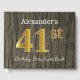 This guest book design features the ordinal number "41st" with a faux/imitation gold-like appearance. It also features a personalised name, and a rustic faux wood look background. It could be used at a party for somebody celebrating their forty first birthday. [~Z0000053]