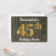 Rustic, Faux Gold 45th Birthday Party; Custom Name Invitation