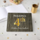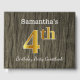 This guest book design features the ordinal number "4th" with a faux gold-like appearance. It also features a personalised name, and a rustic faux wood look background. It could be used at a party for somebody celebrating their fourth birthday. [~Z0000053]