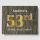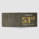 This guest book design features the ordinal number "53rd" with a faux/imitation gold-like appearance. It also features a custom name, and a rustic faux wood appearance background. It could be used at a party for somebody celebrating their fifty third birthday. [~Z0000053]