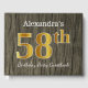 Rustic, Faux Gold 58th Birthday Party; Custom Name Guest Book