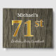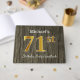 This guest book design features the ordinal number "71st" with a faux/imitation gold-like appearance. It also features a personalised name, and a rustic faux wood look background. It could be used at a party for somebody celebrating their seventy first birthday. [~Z0000053]
