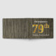 This guest book design features the ordinal number "79th" with a faux/imitation gold-like appearance. It also features a customised name, and a rustic faux wood appearance background. It could be used at a party for somebody celebrating their seventy ninth birthday. [~Z0000053]
