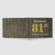 This guest book design features the ordinal number "81st" with a faux/imitation gold-like appearance. It also features a personalised name, and a rustic faux wood look background. It could be used at a party for somebody celebrating their eighty first birthday. [~Z0000053]