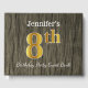 This guest book design features the ordinal number "8th" with a faux gold-like appearance. It also features a custom name, and a rustic faux wood look background. It could be used at a party for somebody celebrating their eighth birthday. [~Z0000053]