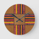 Rustic Faux Leather Ethnic Stripes Cross Western Round Clock