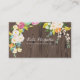 This beautiful and modern business card features your name or business name in cursive writing on a faux wood background with a colourful flower arrangement at the top. Perfect for a graphic designer, artist, web designer, florist, hair stylist, makeup artist, wedding planner, or anyone in a creative profession.