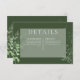 Introducing our enchanting wedding details card, where elegance meets nature in perfect harmony. A soft, feathery oval frame adorned with lush forest greenery, ivy, ferns, and more, beautifully set against a mesmerising dark emerald green background. Capture the essence of a romantic woodland escape with this stunning invitation that will leave your guests breathless. The intricate details of the feathery foliage evoke a sense of natural beauty, while the deep emerald hue adds an element of sophistication and allure. It's designed to set the tone for your special day, beckoning your loved ones to a celebration immersed in lush greenery and the serenity of nature. Each element of the design is carefully curated to create a harmonious visual experience, leaving a lasting impression on your guests. This design embodies the essence of romance and natural beauty. It serves as a wonderful keepsake for your guests, a tangible reminder of the magic they will witness on your wedding day. Choose this design to set the stage for a celebration that intertwines elegance and nature seamlessly. Let us help you create an unforgettable first impression, as you embark on a journey of love and joy. This card is part of the Rustic Fern Green Foliage Emerald Green wedding suite of cards.
