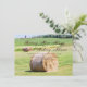 Rustic Field Hay Bales Country Wedding Invitations featuring a beautiful country field scene with harvested hay bales, green grass, and beautiful blooming trees and bushes. These wedding announcements would be great for a country or farm ranch wedding.