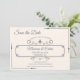 With filigree patterns it is easy to make this save the date card fit your unique taste and style. The filigree pattern works for any theme, and this - along with the slightly segmented text and the simplicity, brings the card back into the modern era as well. The format allows plenty of room for you to include all pertinent information announcing your wedding date and more!