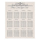 Rustic Filigree Wedding Seating Chart feature a filigree patterns in the top followed by the wording" Please find your seat" and 12 tables with a list of 10 guests underneath. You can increase or decrease the number of tables and guests.