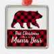 Rustic First Christmas Mama Bear Red Buffalo Plaid Metal Ornament