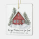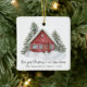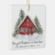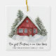Rustic First Christmas New Home Woodland - A quaint rustic Christmas cabin in the woods with snow is featured on our ornament. pretty handwritten text reads " Our first Christmas in our New Home" and is personalised with your family name and year. The back of the ornament also features the cabin with the address of your new home.