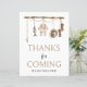 Add a touch of rustic charm to your baby shower with this beautiful 'Thanks for coming' sign! Designed with watercolor illustrations of fishing gear, baby overalls, and boots, this sign is a perfect fit for a little fisherman-themed baby shower.