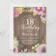Rustic Floral 18th Birthday Invitation for Women. Watercolor Floral, Pink, rustic wood background. For further customisation, please click the "Customise it" button and use our design tool to modify this template.