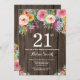 Rustic Floral 21st Birthday Invitation