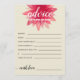 Invite guests to share some advice and thoughts with our modern and stylish bridal shower advice cards. This design features a watercolor illustration of a reddish pink wild flower, and a matching combo of calligraphy script and sans serif fonts on a creamy white background. Personalise with your own details or custom text.