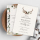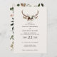 Rustic floral and stag antlers wedding invite