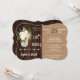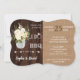 Rustic, unique and elegant design featuring a combination of burlap and old barn as background, watercolour ivory flowers in a vase, gorgeous typography I DO BBQ with a ring replacing letter O. For more, please, visit my I Do BBQ Chalkboard/Barn and Gingham Collection.