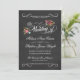 Vintage Floral Chalk Board Wedding Invitations - Charming hand painted country bouquet of abstract roses, daisies and whimsical wild flowers creates a beautiful floral wreath with classic and stylish vintage style script calligraphy on blackboard background makes an eye-catching black and white wedding invitation with a splash of colour. Add your names and wedding info in this easy to use template. Elegant mixed chalk and letterpress style retro typography with fancy swash script is suitable for both formal or semi-formal theme. Perfect for trendy modern country weddings with a classy but casual touch of sophisticated romantic southern charm for traditional couples. Complete wedding packet, bridal stationery sets, postage and mailing accessories kits available upon request. Please contact us for help with customisation if you need additional room for your wedding details.