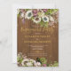 Elegant rustic country traditional floral autumn fall engagement party invitation with ivory cream and dusty purple plum flowers with green leaves against a light brown barn wood background with strings of twinkle lights and gold typography script. ++++++++++++++ Easy to customise with your details! +++++++++++++++ Suitable for summer, winter or autumn fall outdoor backyard country farmhouse engagement parties or couple showers.