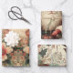 Rustic Floral Christmas Santa, Elves & Reindeer Wrapping Paper Sheets