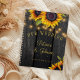 Rustic country sunflower wedding planner featuring strings of twinkle lights and big sunflowers on a dark brown barn wood background. It can be a beautiful bridal shower gift for the bride.
