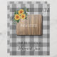 Custom text chapter divider page for rustic countryside style recipe organiser binder with sunflowers bouquet and natural wood over a trendy black and white buffalo check plaid gingham pattern. +++++++++++ Personalise it with your text (recipe category title) and your family name and monogram / name initial!