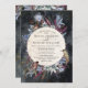 Rustic floral frame with birds, an intricate and beautifully rustic design. Watercolour flowers intertwine around a circle frame. A detailed study of birds gently perch around the elegant text. For a rustic elegant garden wedding. Tones of plum, dusty blue, and greens from dark emerald to soft sage. To suit a summer country rustic wedding, but paired with the right envelopes and accessories could also suit a seasonal or winter or fall wedding.