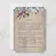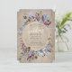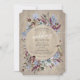 Rustic floral frame with birds, an intricate and beautifully rustic design with a rustic wooden effect backing. Watercolour flowers intertwine around a circle frame. A detailed study of birds gently perch around the elegant text. For a rustic elegant garden wedding. Tones of plum, dusty blue, and greens from dark emerald to soft sage. To suit a summer country rustic wedding, but paired with the right envelopes and accessories could also suit a seasonal or winter or fall wedding.