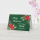 Merry Christmas for friend and his family card with rustic watercolor flowers and forest green background.