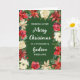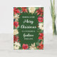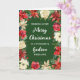 Merry Christmas for godson card with rustic watercolor flowers and forest green background.