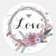 Rustic Floral Grapevine Wreath, Love Classic Round Sticker