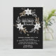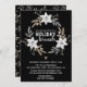 This rustic floral holiday brunch party invitation card is perfect for a cute holiday event. The design features a white and tan poinsettia flower wreath and a small heart on a black background.