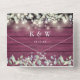 A rustic all-in-one wedding invitation featuring pretty watercolor greenery foliage, string lights, mason jars and elegant modern typography on a burgundy wood panels background. The invitation includes a perforated RSVP card with your wedding website QR code and details. Designed by Thisisnotme©
