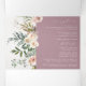 An elegant design with a rustic chic touch, featuring branches, greenery, eucalyptus, and flowers in fall tones including some blush surrounding the invitation information over a light mauve background. This all-in-one sustainable invitation would save you money, no need to include RSVP envelopes, your guests will cut the last panel and mail it back to you as a postcard.