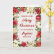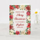 Merry Christmas for nephew card with rustic watercolor flowers and vintage wood pattern.