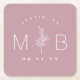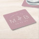 Rustic Floral Stem Wedding Monogram | Mauve Square Paper Coaster