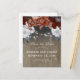 Plum and burgundy flowers, string lights and old wood barn style rustic save the date postcards