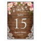 Create your own Table Number Card with this "Rustic Wood Pink Floral Lace String Lights Table Card" template to match your wedding colours and style.