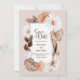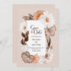 A rustic boho fall floral wedding save-the-date featuring flowers and autumn leaves.