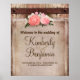 Rustic country Wedding Welcome Sign Poster with pink flowers, old barn wood and vintage burlap