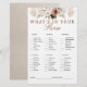 This rustic floral “What’s In Your Purse?” bridal shower game adds a playful and personal touch to your celebration. Guests score points by checking off items they carry, from lipstick to loose change!