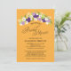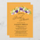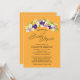 Perfect for a country style Bridal Shower. A Rustic spray of flowers in colours of Deep Purple, Lilac, Yellow with White Daisy wildflowers. Bright Yellow Orange Background. If you have any questions on this design or want a colour change in the flowers to match your wedding please email me paula@labellarue.com Also check for the Wedding Suite, INVITATION, RSVP, RECEPTION and GUEST SEATING Cards to match! Don't forget to pick your favourite cardstock to have it printed on!